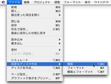 ファイルメニューの高度なディスク作成で構築を選び、保存場所を指定します。