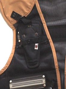 これだと、作りがしっかりしているし、ビデオ用ベストと同様でポケットも多くて便利だし、水に濡れても大丈夫だし。なにより、釣り竿を固定するためのフォルダ、ハーネスやベルトもついているので、カメラの固定にも使えるでしょう。